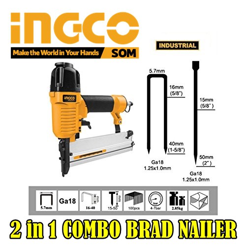 Ga18 Mesin Paku Tembak Ingco Staples 2 In 1 Nail Gun Brad Nailer Air Shopee Indonesia