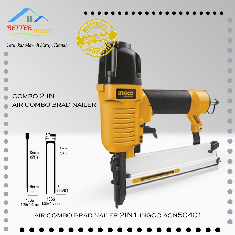 Nail Gun 18gauge Ingco Mesin Paku Tembak Staples 2in1 Combo Brad Nailer F50 Max Paku 50mm Shopee Indonesia