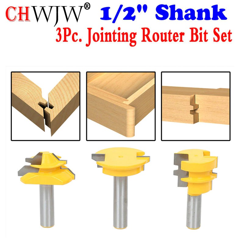 3pc Jointing Router Bit Set Lock Miter Glue Joint Drawer Front Woodworking Cutter Tenon Cutter Shopee Indonesia