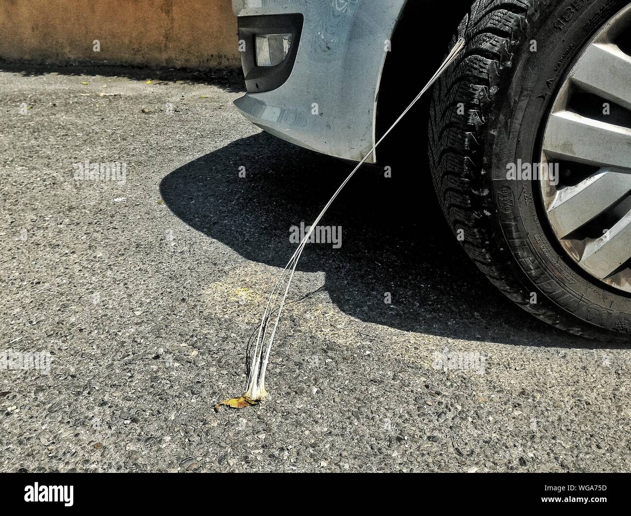 Bubble Gum Stuck To Car Tire On Road Stock Photo Alamy